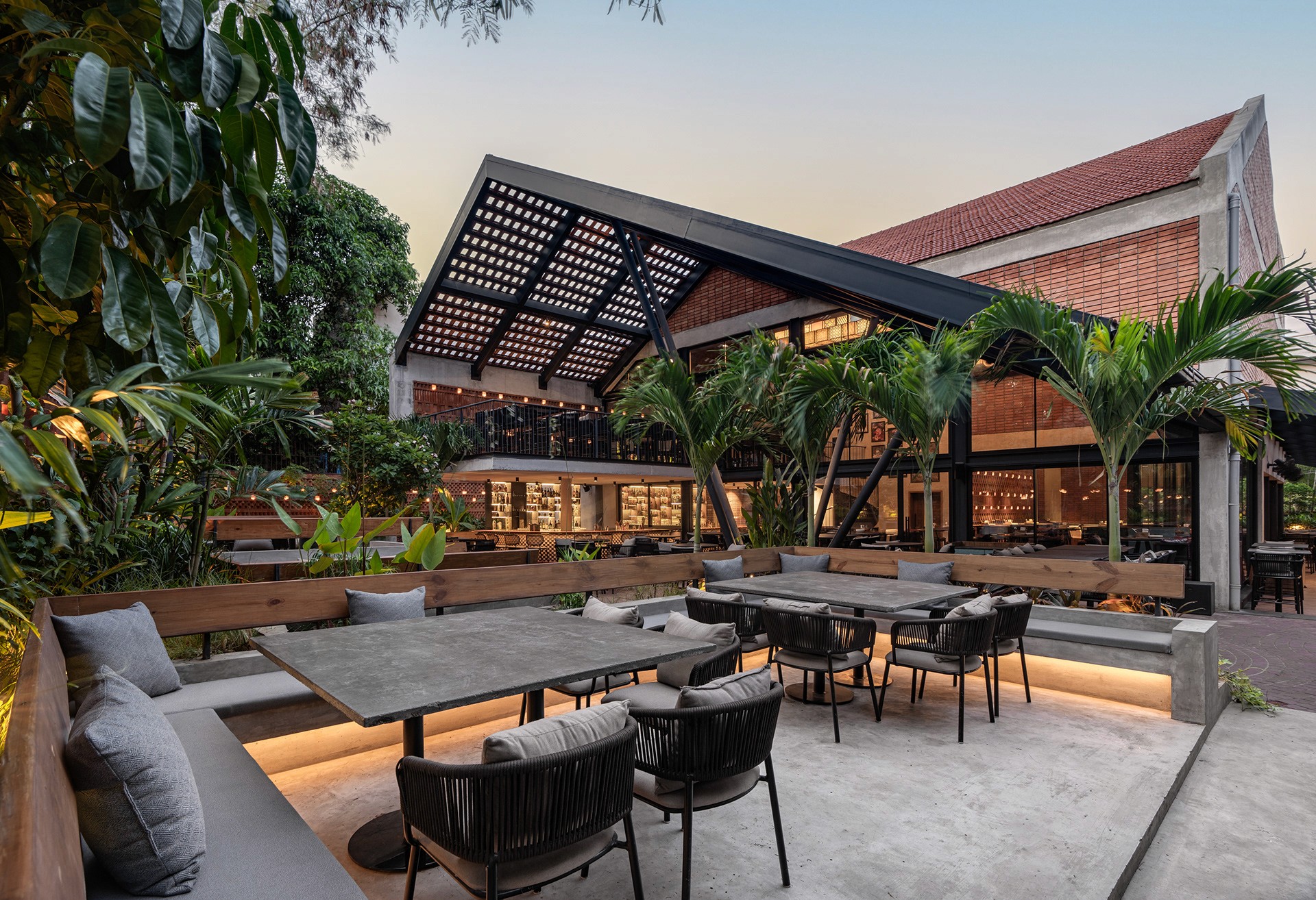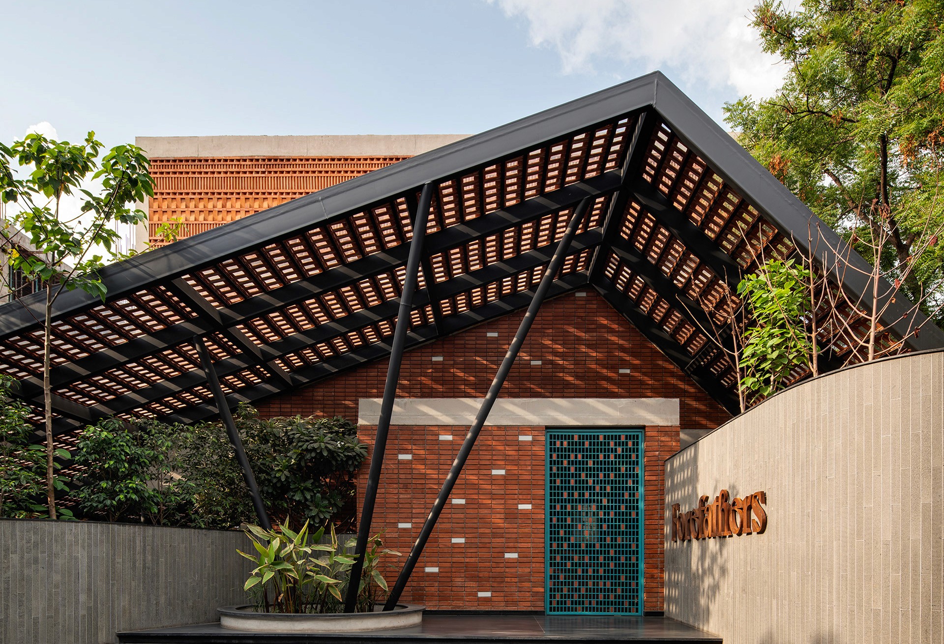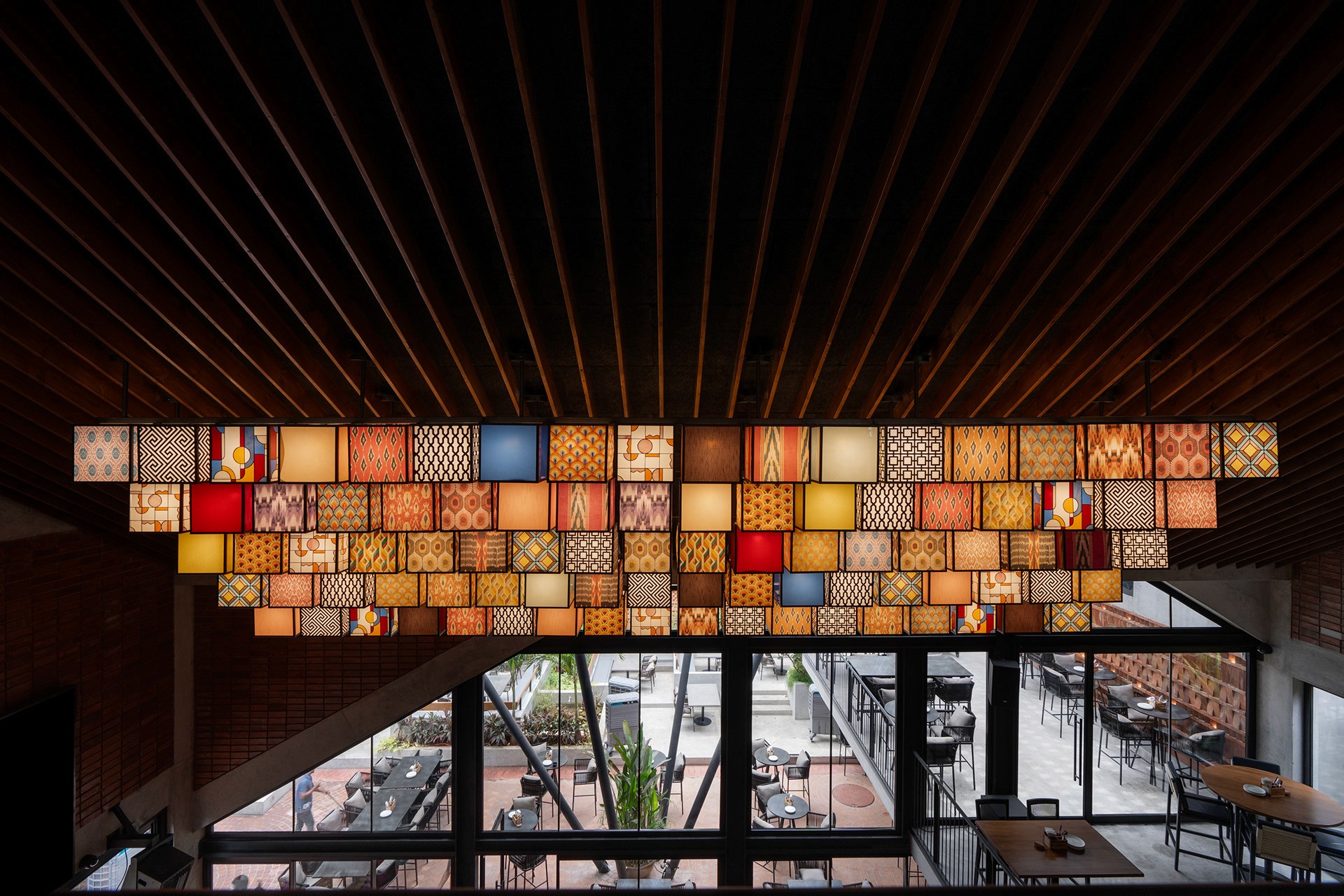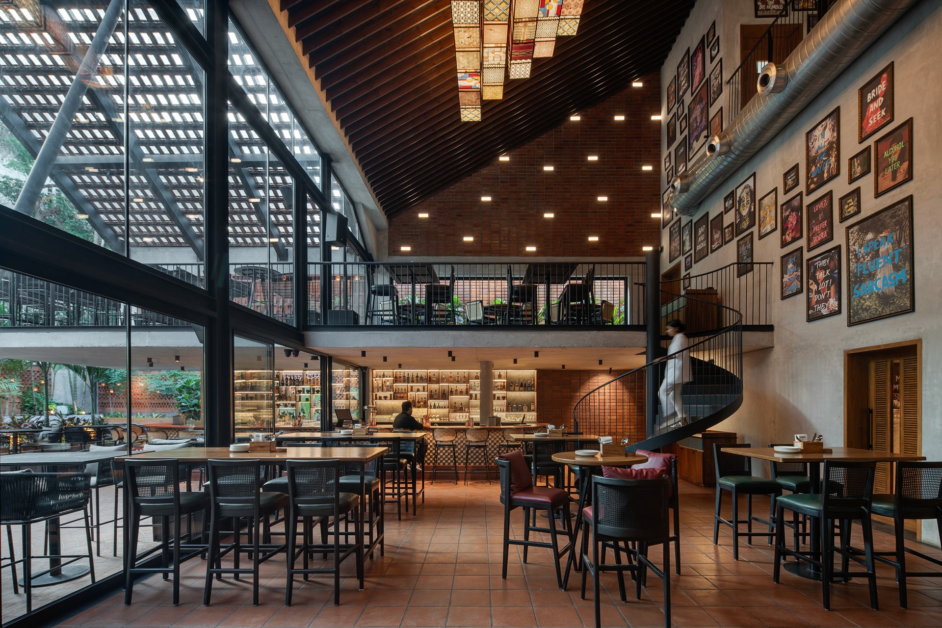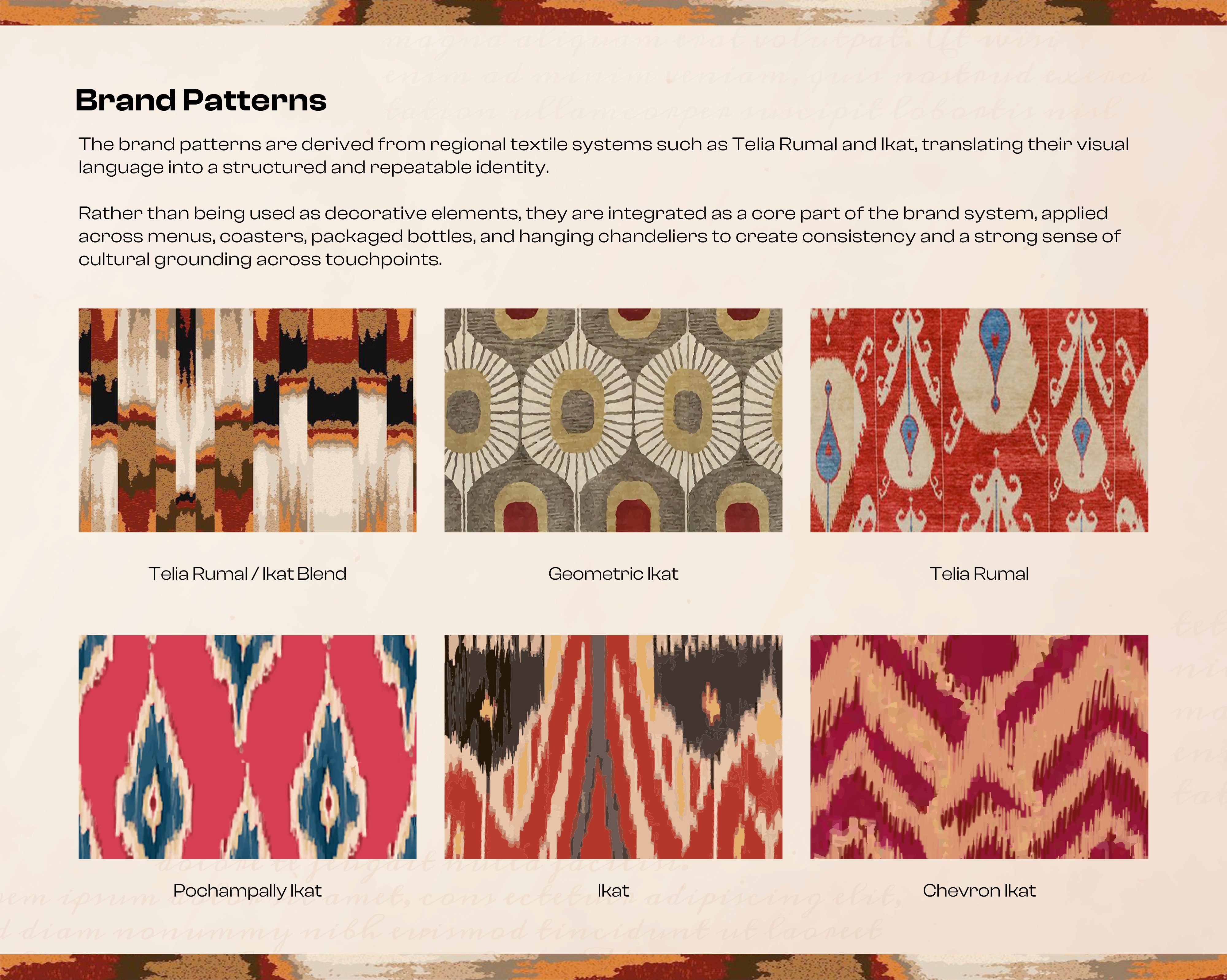 The brand draws from regional textiles such as Telia Rumal, Ikat, and Dhurries, using their patterns, textures, and visual rhythms as the foundation for a cohesive identity system. This thinking extends beyond branding into the spatial experience. The architecture and interiors combine vernacular materials like terracotta, brick, and textiles with modern construction techniques, creating a space that feels both rooted and relevant.